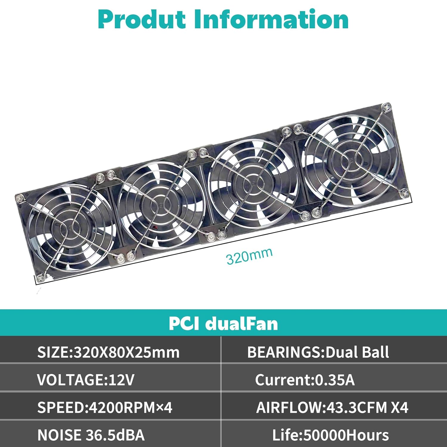 320mm (L) x 80mm (W) x 25mm (H)​​ – Fits ​standard 19″ racks, PC cases, and enclosures.​Four-fan modular design​ allows ​individual replacement​ if needed.​Screw-mounting​ for secure placement in ​horizontal or vertical​ orientations.