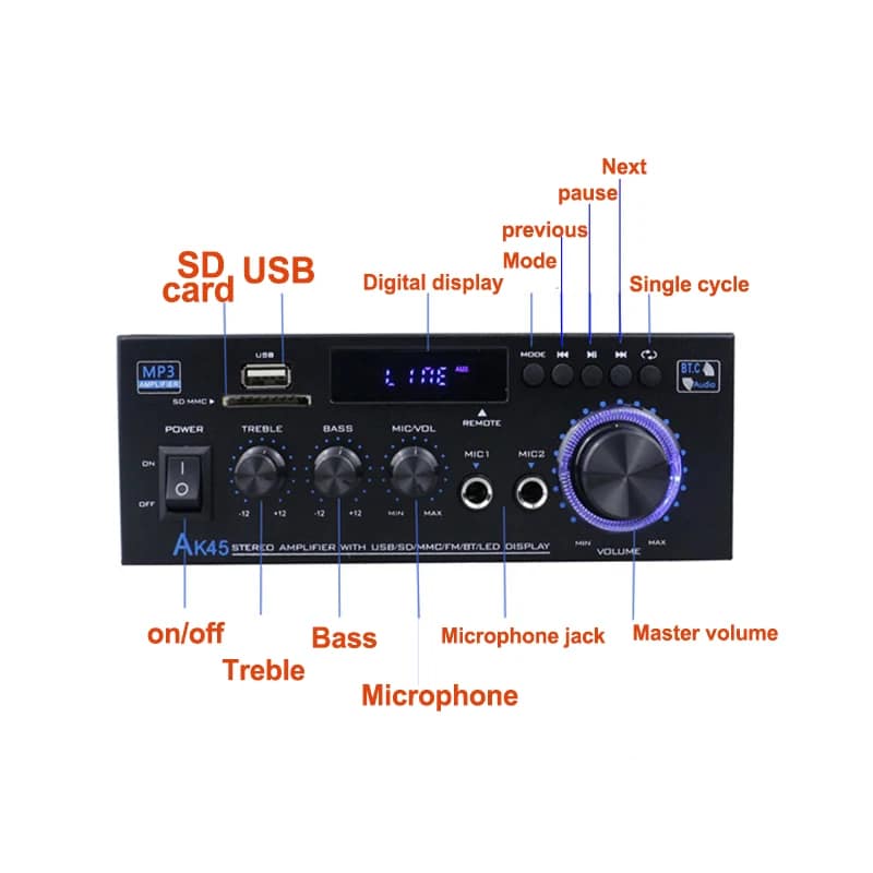 Overall, the AK35/AK45/AK55 Sound Amplifiers Bluetooth Digital Amplifiers are a fantastic choice for anyone looking to enhance their audio experience at home or on the go. With their versatile connectivity options, high-quality sound reproduction, and user-friendly remote control, these amplifiers offer superior performance and convenience. Say goodbye to mediocre sound quality and upgrade to the AK35/AK45/AK55 Sound Amplifiers for a truly immersive listening experience.