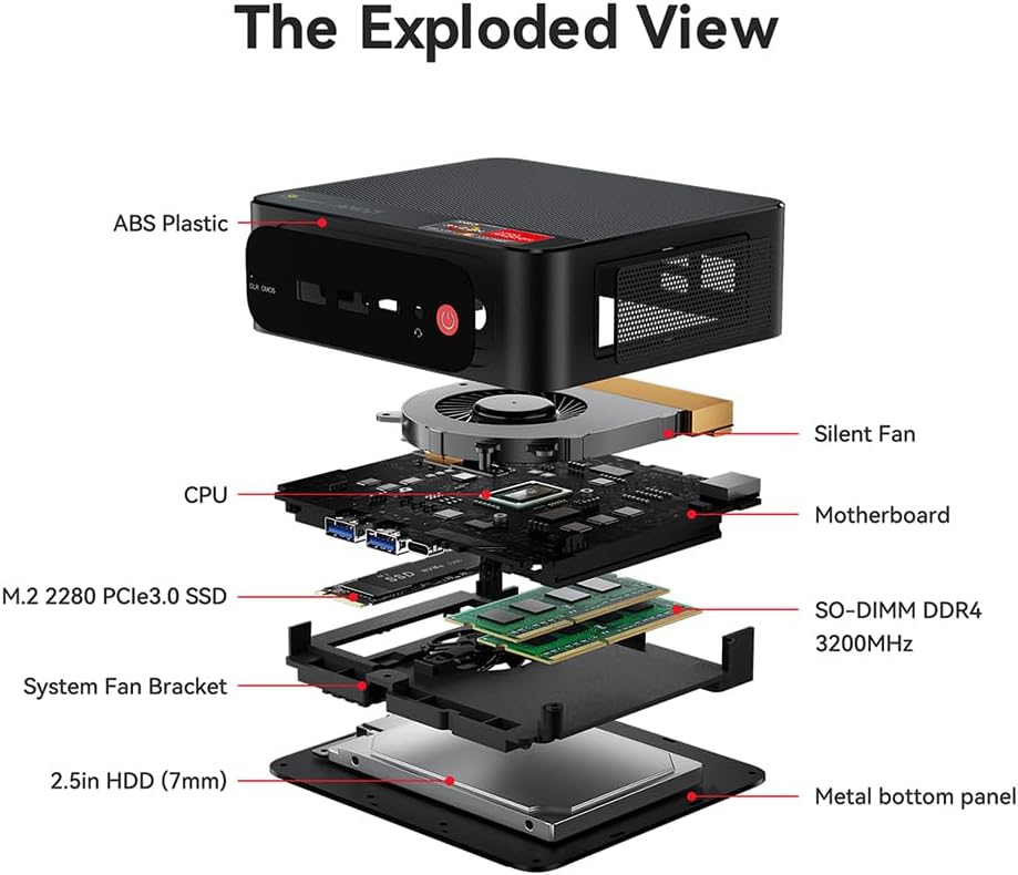 【POWERFUL PERFORMANCE】Beelink SER5 ryzen mini pc equips with 8-core/16-thread AMD Ryzen 7 5700U(up to 4.3GHz), The base frequency is 1.8GHz / the dynamic frequency can reach 4.3GHz. Beelink mini pc ryzen is a robust hub for your every work and gaming need. Beelink micro pc excellent in 2 tubes and 1 fan designed makes it excellent in texture, durable and keeps its cool, standby for a day without getting hot.