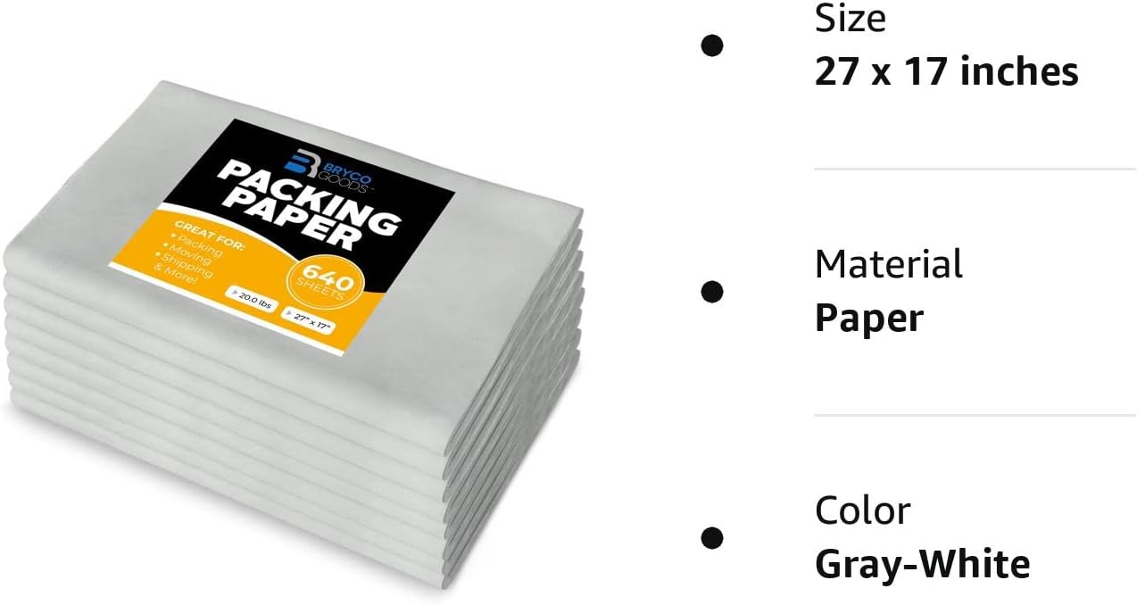 Bryco Goods Packing Paper Sheets for Moving – 20lb – 640 Sheets of Newsprint Paper – Must Have in Your Moving Supplies – 27″ x 17″ – Made in USA