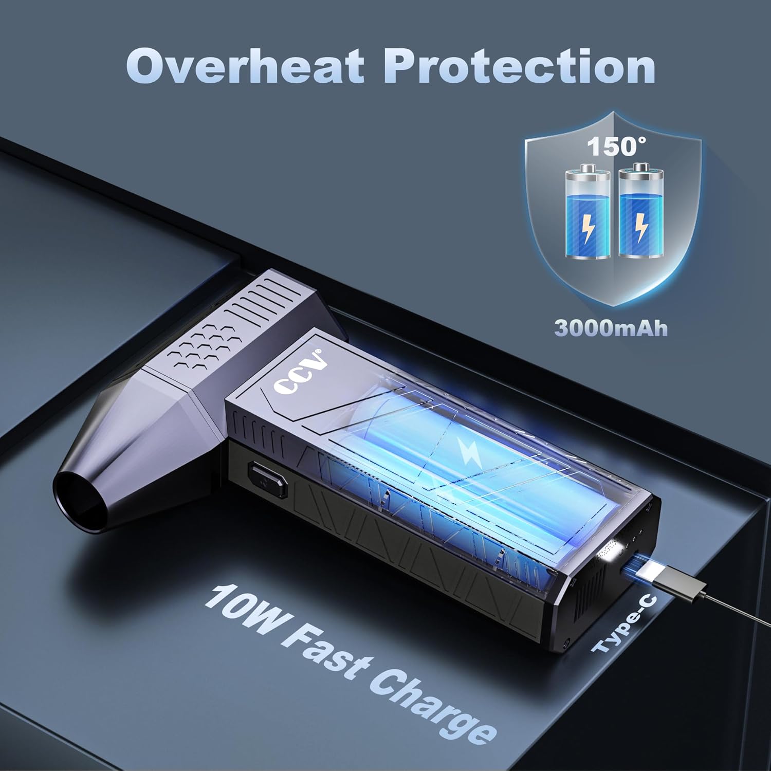 【Rechargeable Air Duster】– Accessories is a USB-TepyC charging cable which supports up to 10W fast charging,Can be used for 100min when fully charged.Energy saving, environmental protection, recyclable.
