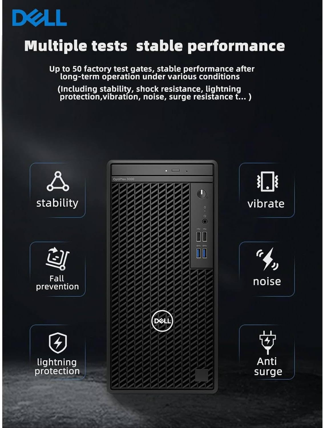 【Business-Ready Design】Perfect for professional environments with a sleek, compact tower design that fits easily into any office setup. Includes a wired keyboard for a reliable, no-lag typing experience.