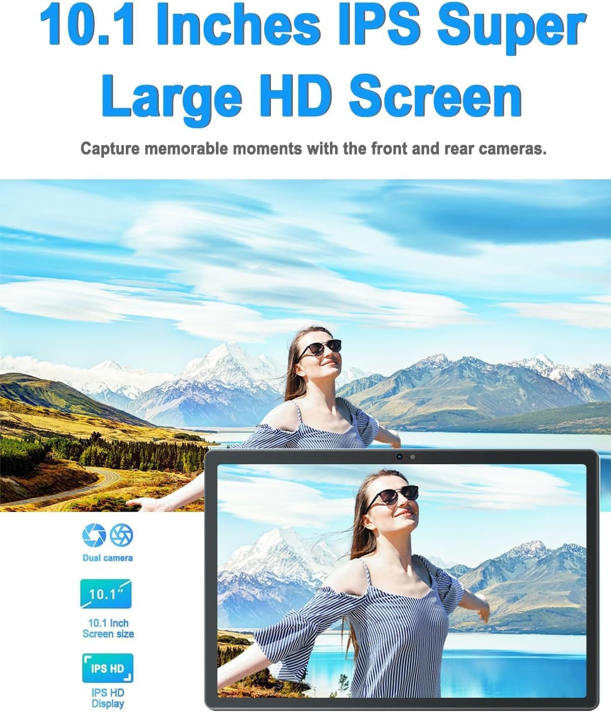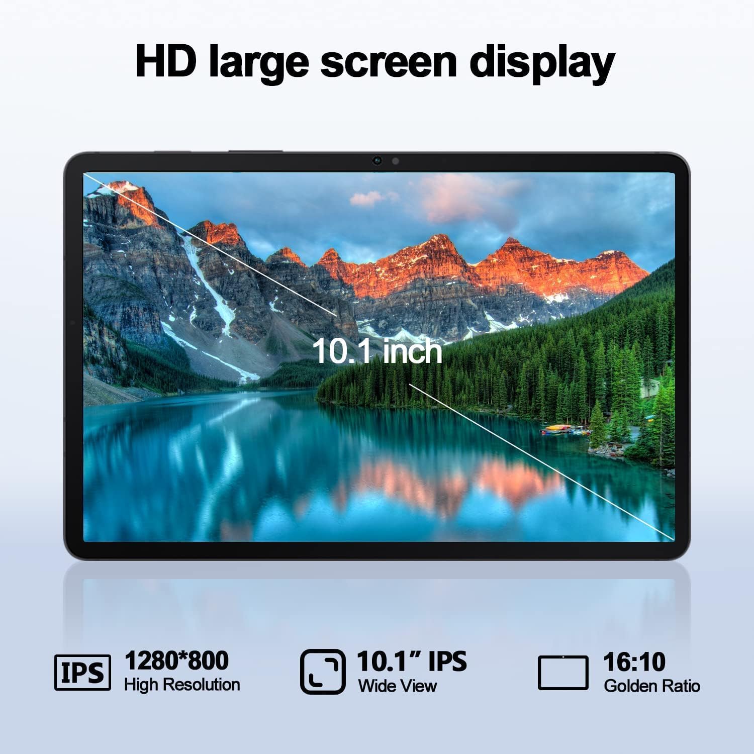HD SCREEN:The resolution of home tablet is 1920*1200 IPS. 10.1 inch tablet uses an ultra-thin frame design and a sensitive screen. With 8MP + 5MP dual camera and dual speakers, large screen design with more detailed color performance, bringing you more advanced visual enjoyment.