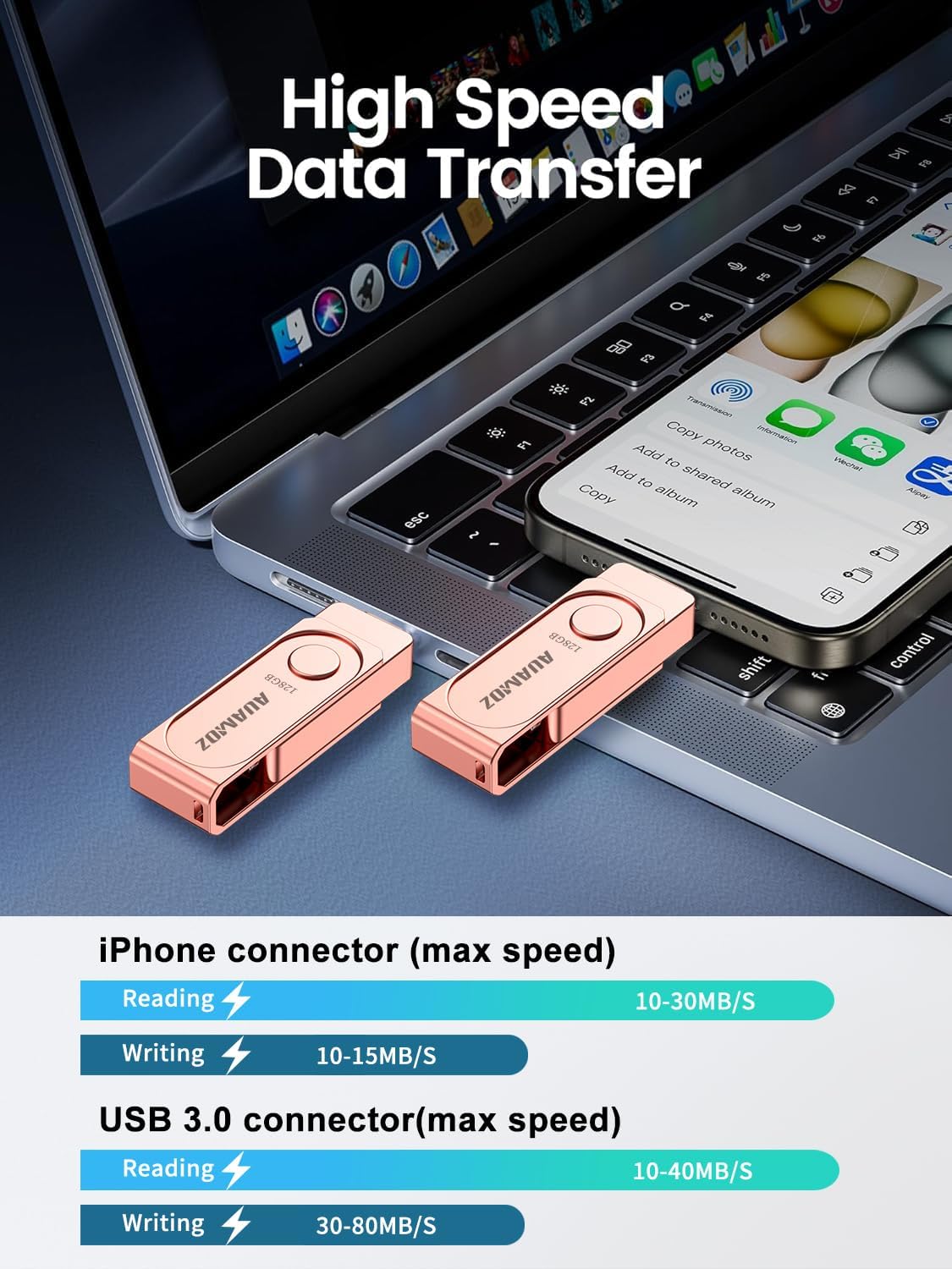 Flash Drives 128GB Intended for iPhone iPad, Memory Stick Storage for Photos and Videos Backup, Compatible with iPhone iPad Android and Computers (Rose Gold)