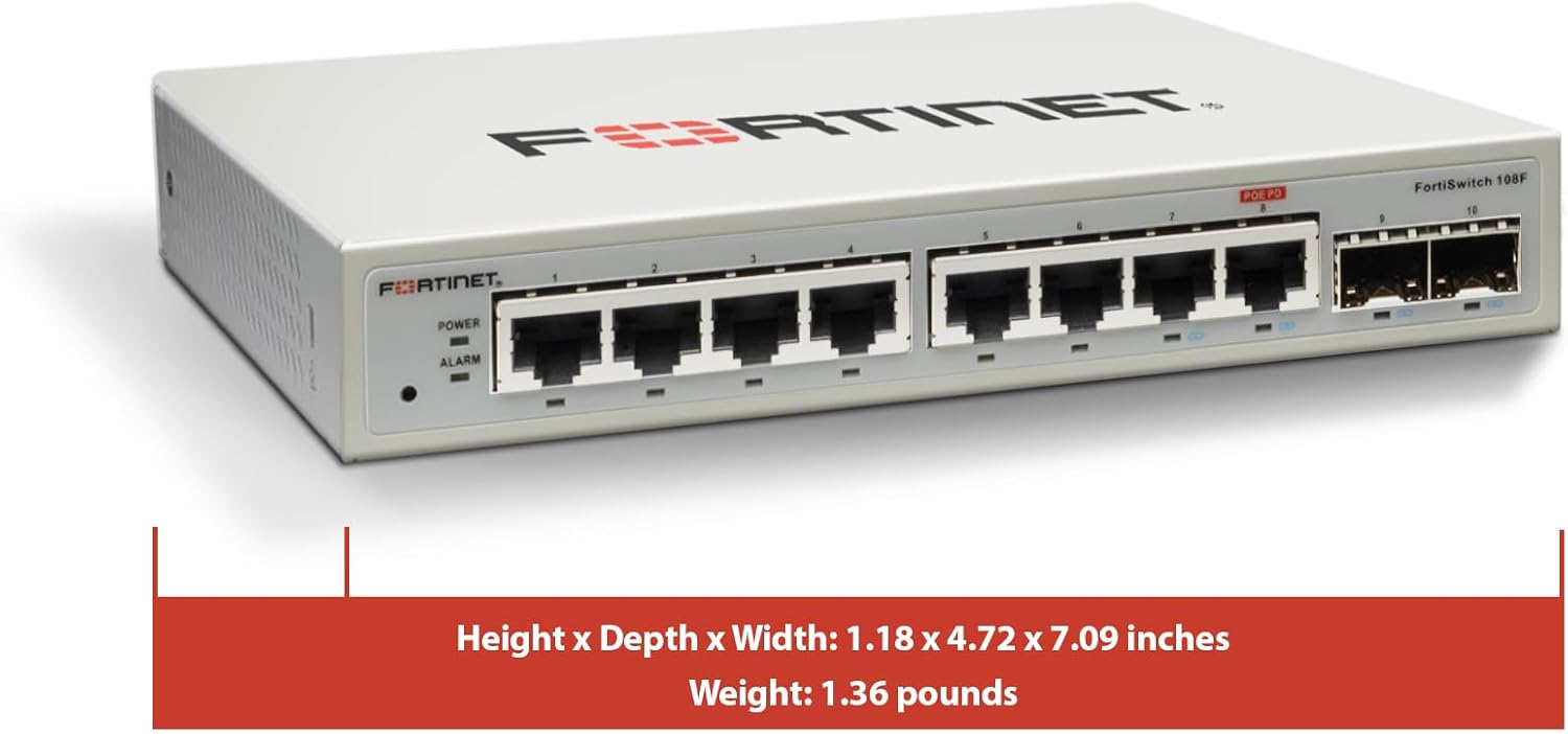 Fortinet FortiSwitch – 108F L2 Switch – 8 GE RJ45, 2 GE SFP, Fanless (FS-108F)