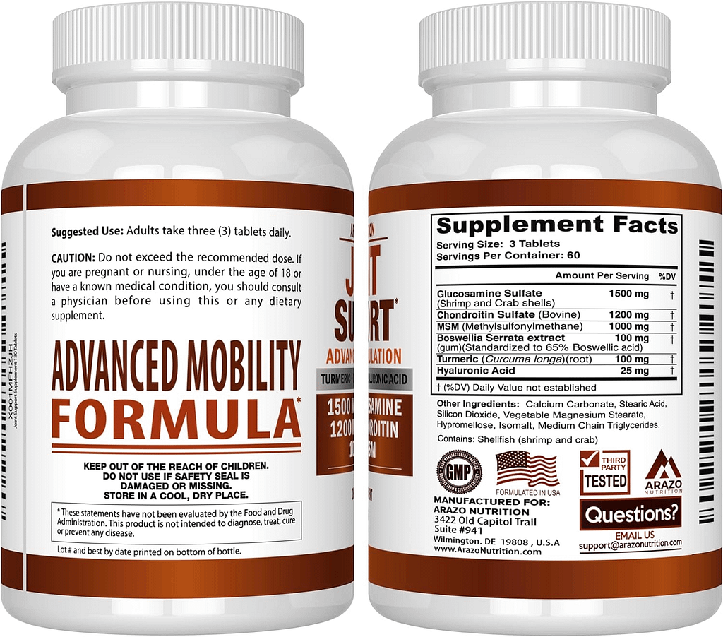 If you’re looking for a natural, effective way to support your joint health and alleviate pain, consider trying the Glucosamine Chondroitin Turmeric Msm Boswellia Joint Support Supplement from Arazo Nutrition. With its powerful blend of ingredients and proven results, this supplement is a safe and affordable option for those looking to improve their joint health and quality of life. Say goodbye to achy joints and hello to a more active, pain-free lifestyle with this groundbreaking formula.