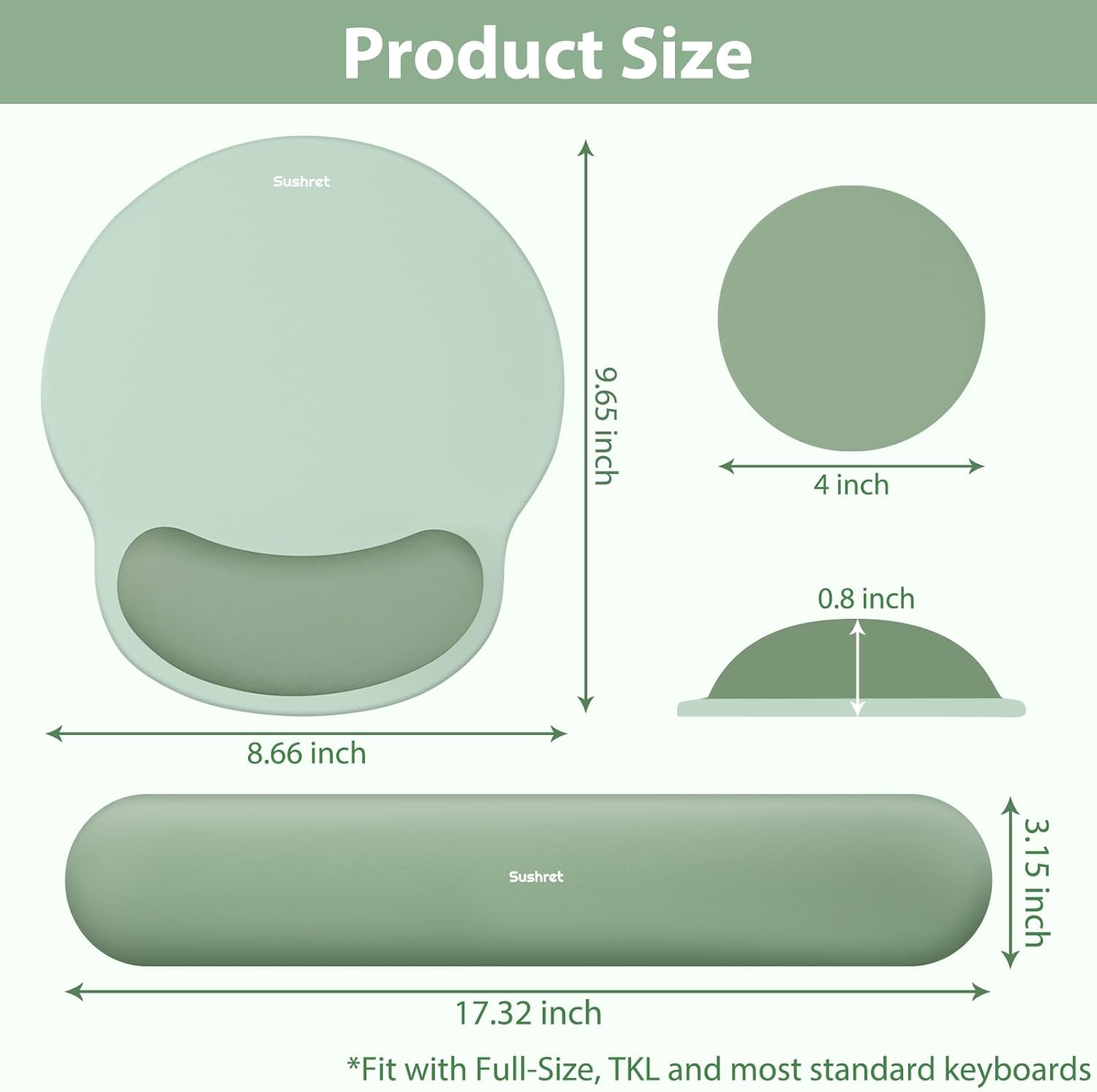 Mouse Pad and Keyboard Wrist Rest, 3-in-1 Gel Memory Foam Ergonomic Mouse Pad with Wrist Rest Set,Gaming Mousepad Arm Cushion Support for Computer Office Desk Accessories Cute Setup,Sage Green