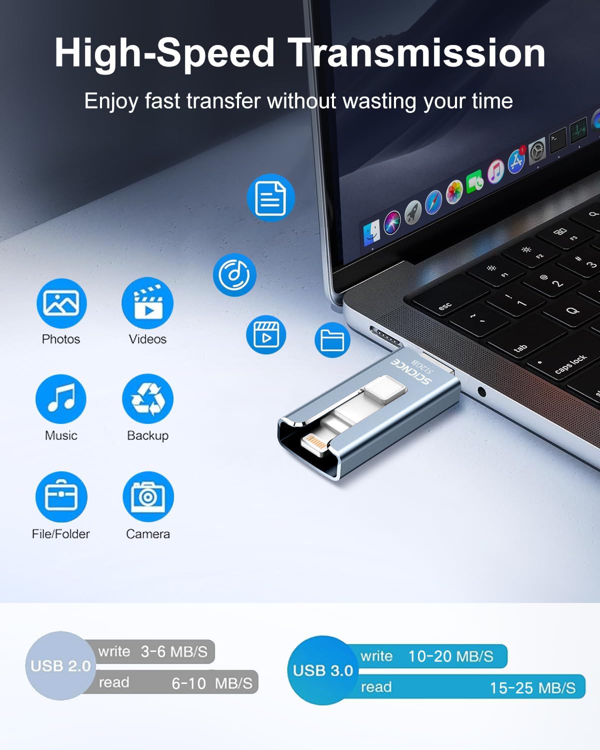 SCICNCE 512GB Flash Drives Intended for iPhone, Memory Stick Storage Backup Photos and Videos, Plug and Play No Application Required Compatible with iPhone iPad Android and Computers (Light Blue)