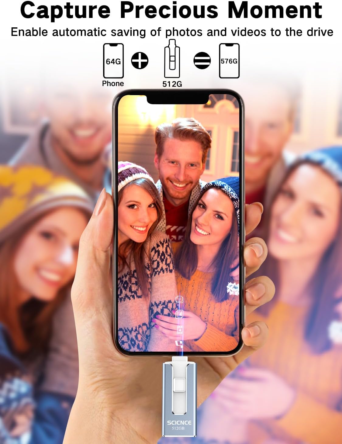 【Plug and Play, No Application Required, Instantly Increases iPhone and iPad Memory Space】With 512GB of additional storage, this iPhone flash drive perfectly addresses memory shortages on your iPhone or iPad. Whether you’re capturing short videos or selfies, simply plug the memory stick in your device, easily back up your photos, videos, and files, share your special moment with your friends and family on your social media with just one-click.