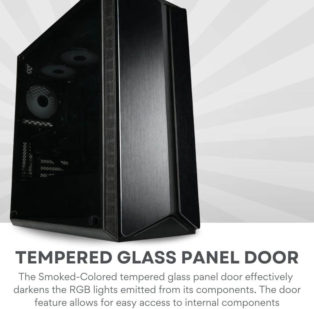 [PC CASE] Sentinel with Brushed Aluminum Front Panel, Beveled Silver Edge, and Smoked Glass Side Panel | No Bloatware | Graphic output options include 1x HDMI and 1x DisplayPort Guaranteed, additional ports may vary | Free Rainbow Backlit USB Keyboard and LED USB mouse