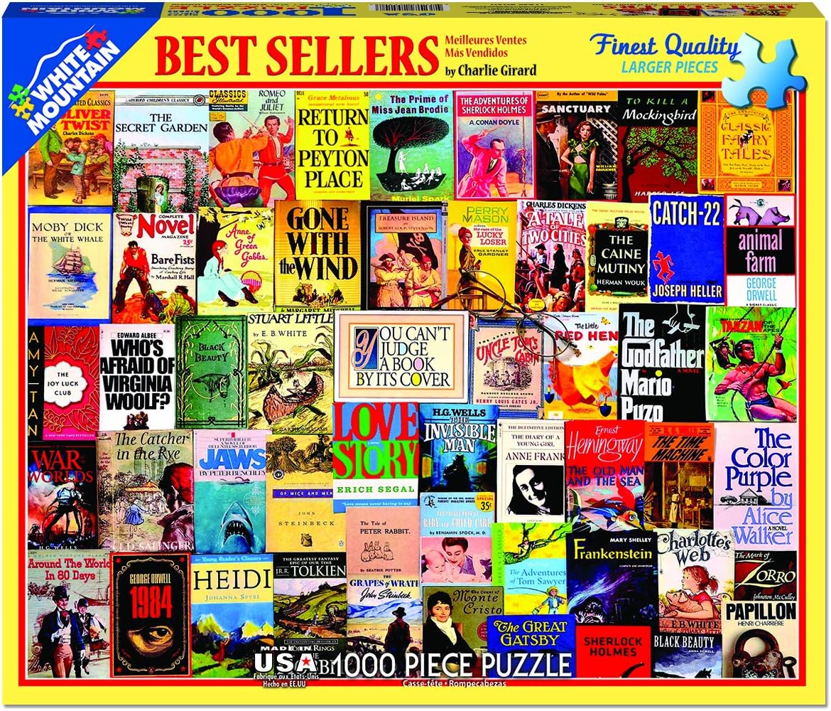 White Mountain Puzzles “Best Sellers”, Vintage Book Covers Collage, 1000 Piece Jigsaw Puzzle